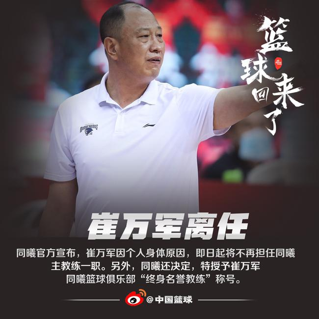 同曦官宣崔万军离任 被授予终身名誉教练称号