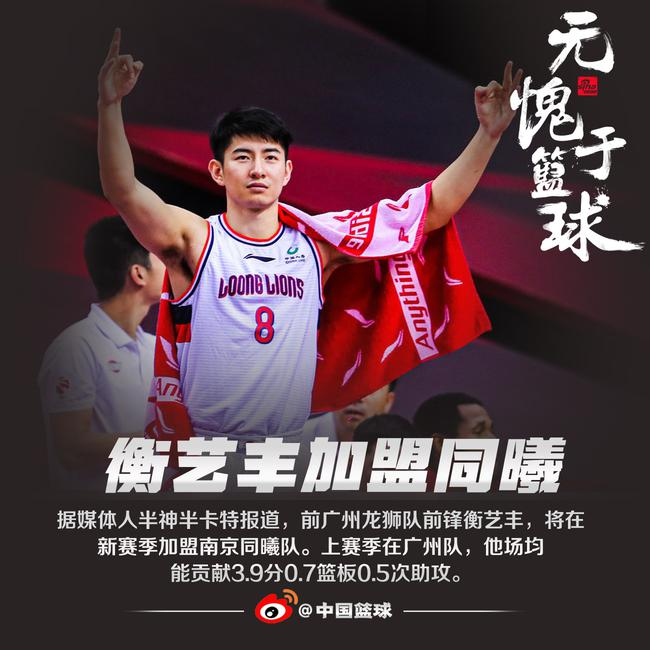 北京时间9月2日,据媒体人半神半卡特报道,已在广州男篮效力三年的衡艺丰将在新赛季加盟同曦男篮,回到家乡江苏。
