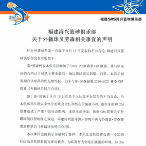 针对外籍球员泰·劳森于9月18日发表的不当言论,福建浔兴篮球俱乐部发表声明如下: