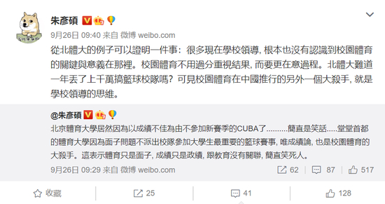 程鑫凯在个人社媒分析了原因:“学校选择不打,是因为队内都是新人,青黄不接。学校的重心一直在国家篮球青年队培养上,尽管校男篮一直在证明自己非常的有特点,但学校就是要看成绩!”