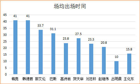 上个赛季,辽宁队球员出场时间如下: