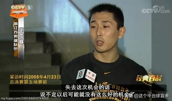 2005年CBA总决赛,新科第一江苏队挑战卫冕冠军广东。胡雪峰在赛前接受采访时压力很大,坦言这可能是他最后的机会: