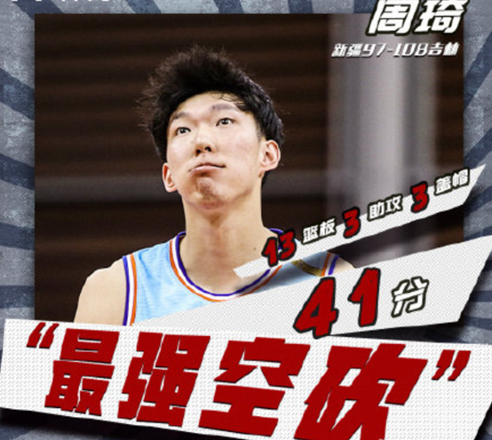 在上周末结束的一场CBA常规赛中,周琦再现“大魔王”本色,整场比赛砍下41分和14个篮板,创造了本赛季本土球员的得分新高,不过可惜新疆队其他球员发挥不佳,最终还是以10以上的差距输给了吉林,周琦也荣膺本轮的“空砍群群主”。