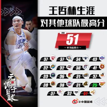 再来看现役球员,福建队的王哲林单场最高得分为51分,为现役本土球员中第一名,而且他还多次拿到过常规赛得分王的荣誉,职业生涯面对各支球队的最高得分也几乎都在30分以上,不愧为CBA联赛的“大王”!