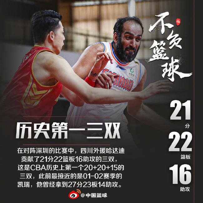 CBA史上首个20+20+15三双!哈达迪迎两个里程碑