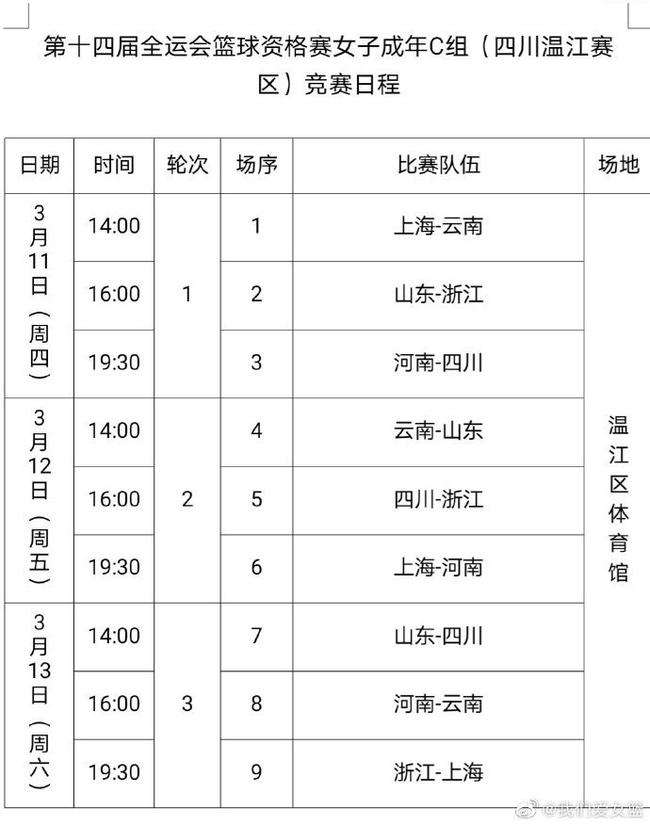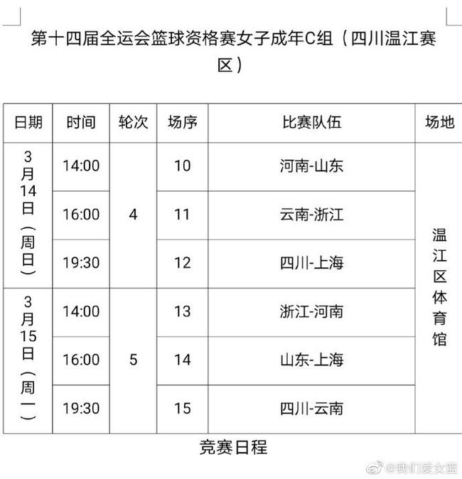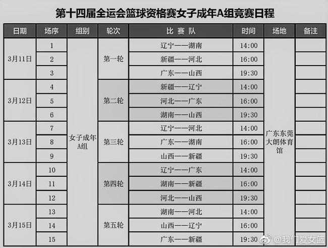 北京时间3月7日,据著名篮球博主@我们爱女篮 分享,2021年全运会女篮(成人组)预选赛赛程已全部出炉,小组赛比赛时间为3月11日至3月15日。