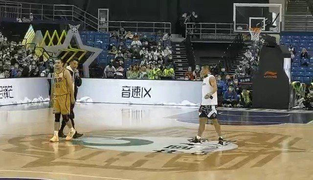 北京时间3月21日消息,CBA全明星赛正赛,北方明星对阵南方明星。第二节末段一次暂停期间,赛场安排了同曦球员西热力江和李景亮的“单挑”环节。