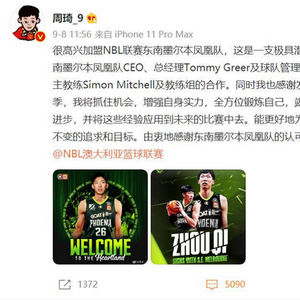 凤凰队的CEO汤米-格里尔说:“周琦的技能是我们以前没有的,我们认为他可以帮助我们在今年巩固NBL联赛中的地位。他的梦想是回到NBA,我们将尽一切努力帮助他实现这一目标。