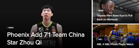 周琦加盟NBL联赛,不止对国内球迷来说是大事儿,对NBL来说也是重磅消息。在NBL官网的首页最显眼位置,关于周琦的报道赫然在列。