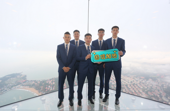 仪式结束后,教练组和球员们前往海天中心81层海天钻石角、80层云上艺术中心参观,球队全新阵容充满朝气,高大帅气的队员与青岛之巅相得益彰,青春活力点燃全场!