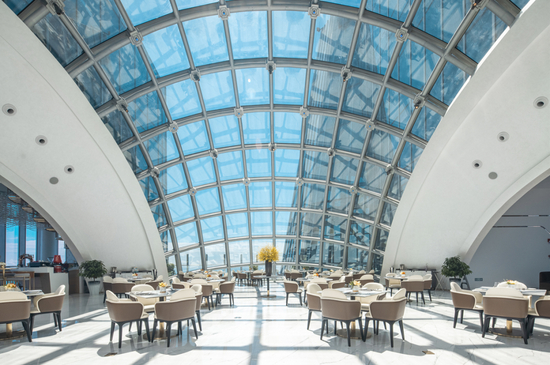 此次青岛国信海天男篮出征地云端钻石俱乐部位于海天中心T2塔楼82层,山海之间,云端之上,眺海水连天,瞰万国建筑,地理位置得天独厚。云端钻石俱乐部定位于城市之巅的顶级圈层平台,打造成为精英群体艺术私享和品鉴、商业发布庆典、高端企业年会、高端商业论坛等活动中心,成为全新的青岛城市新地标。