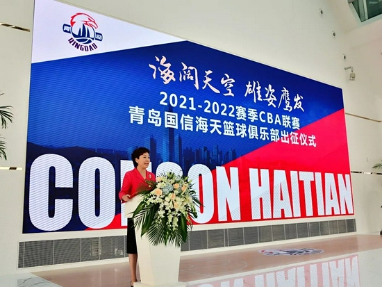 青岛市体育局局长车景华在致辞中对青岛国信海天篮球俱乐部在球队成绩、青训建设和城市篮球氛围营造等方面的工作给予充分肯定,他指出“国信海天男篮是一支让岛城球迷引以为傲的职业篮球队,他们团结拼搏、敢于争胜,为青岛建设现代化国际大都市注入了新的动力;他们志存高远、厚积薄发,向着打造国内一流职业体育俱乐部的战略目标稳步迈进;他们深耕细作、笃行致远,致力于城市篮球文化传播和篮球运动推广,为青岛经济社会发展作出了积极贡献。”
