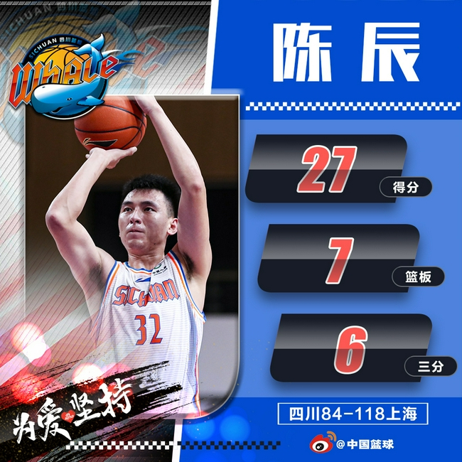 北京时间10月20日,CBA常规赛第二轮,四川84-118不敌上海。本场比赛,陈辰成为四川唯一正常的火力点,砍下了全队最高的27分。