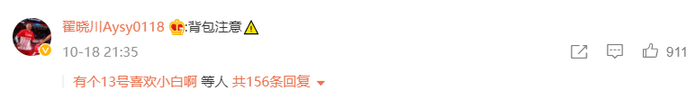 翟晓川微博回复,让郭艾伦注意“背包”。