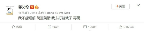郭艾伦被驱逐的话题登顶热搜榜第一,大侄子更新社交媒体:我不能理解,简直笑话!我去打游戏了,再见。球迷的评论大多支持郭艾伦,大家认为第一个技术犯规可以吹,但第二个没有必要。目前不知道郭艾伦是否会被罚款……