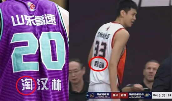 最后我们再说说第四件事,这两天有两名CBA球员的名字被印错:山东队陶汉林变成“淘汉林”,江苏队的李禄曈变成“李禄瞳”。咱不知道是哪个环节出了问题,这样的失误让球迷很难理解。