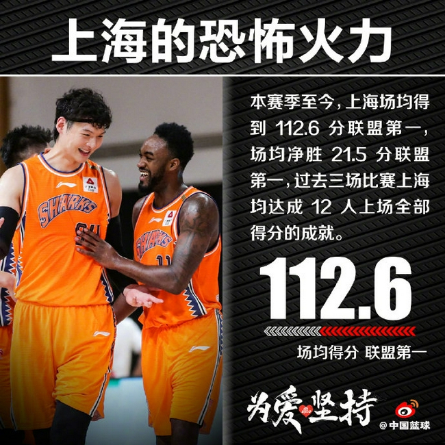上海花费亿元打造的豪阵效果立竿见影,富兰克林和王哲林为首,郭昊文、任骏威、可兰白克、刘铮等实力悍将辅佐,还有新人李添荣袁堂文,火力强劲,场均112.4分冠绝联盟,场均净胜17.9分同样是联盟第一。