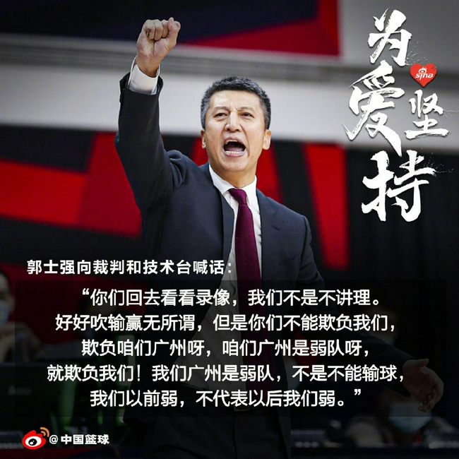 广州与吉林的比赛关键时刻,裁判漏吹了一个明显的走步,导致广州主帅郭士强十分不满,向裁判严重抗议,比赛一度中断了十分钟,技术台甚至启动了广州弃权程序。