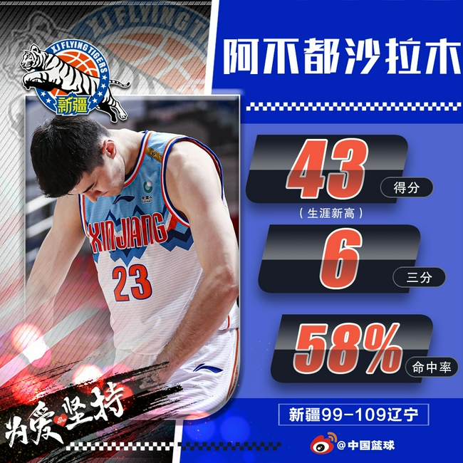 阿不都沙拉木同样是重伤归来,场均24.4分冠绝联盟,力压一众外援和本土得分手。他成为新疆唯一的排面,苦苦支撑了这支曾经的豪门,成为了本赛季的空砍群群主。面对辽宁砍下了生涯新高的43分,这是CBA本赛季至今唯一的一个40+。