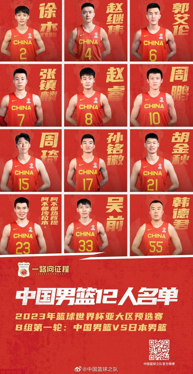 北京时间11月26日,中国篮球之队公布了中国队世界杯预选赛对阵日本男篮的最终12人大名单。