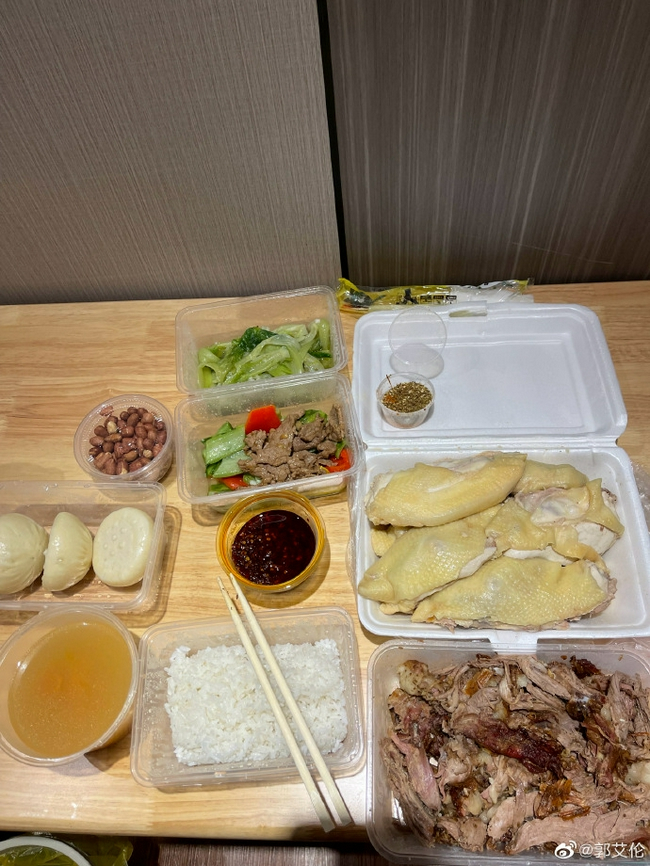 郭艾伦晒出了几张隔离房间的照片以及所吃的食物,并写道:“结束第一天…还有20个一天!杜导给大家拿的羊排不错@杜锋Dufeng”