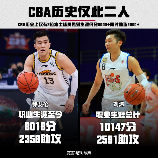 此外,据普罗篮球统计,郭艾伦成为了历史上仅有的2位能得到8000+得分和2000+助攻的本土球员,另一位球员是前上海队名宿刘炜(10147分,2591个助攻)。