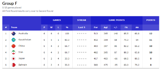 世预赛第四窗口期,中国男篮进入F组,上一阶段小组赛成绩带入这个阶段,小组前三名获得世界杯参赛资格。