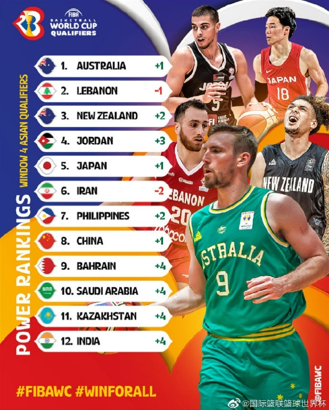 北京时间8月22日消息,国际篮联(FIBA)发布了世界杯预选赛亚大区实力榜,澳大利亚队超越黎巴嫩升至第一,中国男篮上升一位排名第八。