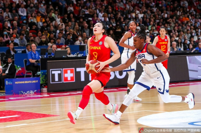 两队开始乱战,比赛节奏陡然上升,韩旭转换进攻投进半截篮,王思雨借掩护45度角三分飚进,美国队远投不中,王思雨突破拉杆上篮得手!中国队把分差追到个位数,中国队单节净胜10分,47-56落后美国。