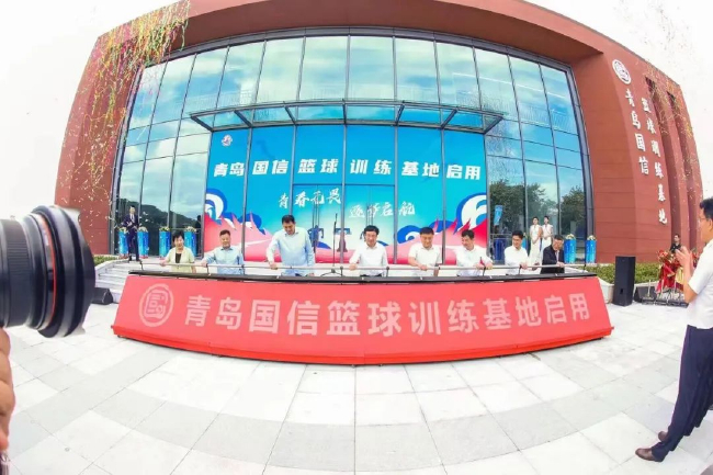 现场领导共同为新基地推杆启动,青岛国信篮球训练基地正式启用。