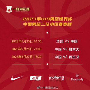 中国U19男篮与加拿大、法国和西班牙分在A组,首场小组赛将于北京时间6月25日凌晨1:30对阵法国队。