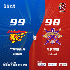 北京时间1月12日消息,2024-2025赛季CBA常规赛第30轮, 广东男篮99-98险胜北控男篮。