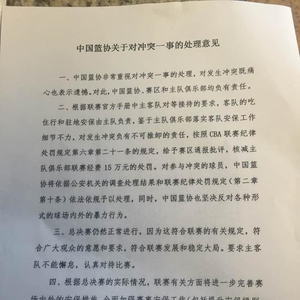 一、中国篮协非常重视对冲突一事的处理,对发生冲突既痛心也表示遗憾。对此,中国篮协、赛区和主队俱乐部均负有责任。