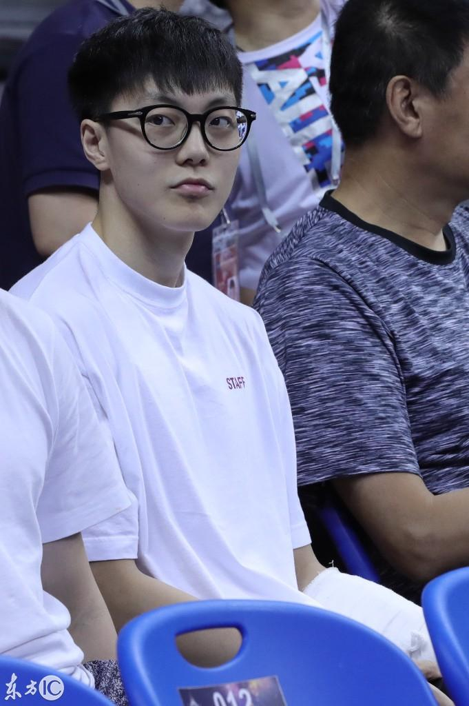 广东受伤小将胡明轩场边看球 佩戴眼镜真像白面书生