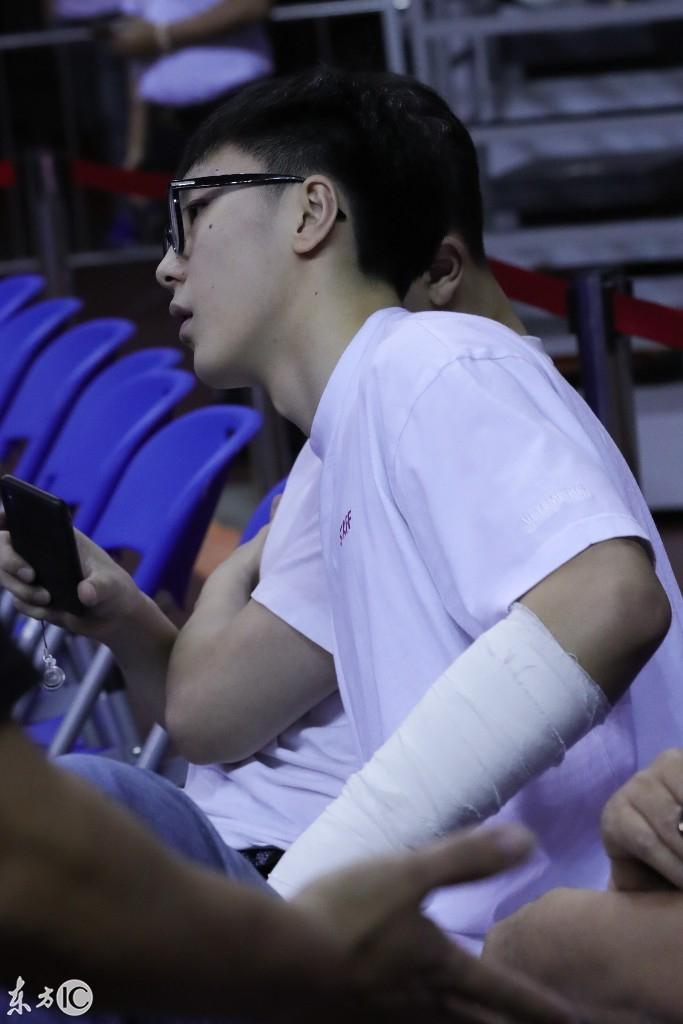 "2018年4月5日CBA半决赛广东宏远VS辽宁衡润,胡明轩手臂骨折休战。(图片来自东方IC)