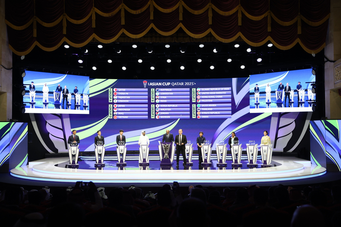 5月11日,2023年卡塔尔亚洲杯足球赛抽签仪式在卡塔尔多哈举行,中国男足国家队与卡塔尔队、塔吉克斯坦队、黎巴嫩队同分在A组。 新华社 图