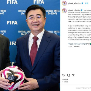 因凡蒂诺晒出两人的合照,并写道:“十分荣幸能与中国足协主席宋凯会面,并且探讨了国际足联增加青年足球锦标赛场次、壮大青年足球锦标赛规模的事宜。我们二人都认识到,培养年轻球员对足球的未来十分重要。宋凯主席也具有这一远见卓识。”