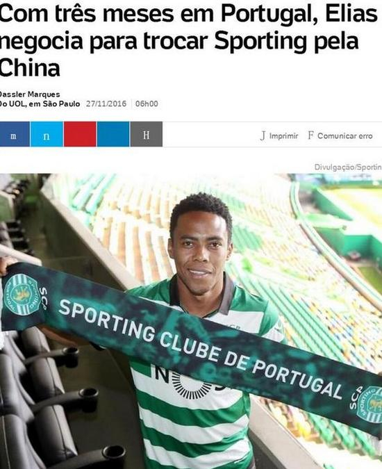 据巴西媒体“UOL”报道,天津泰达有意引进巴西国脚后腰埃利亚斯,埃利亚斯曾和河北华夏幸福、山东鲁能传出绯闻。天津泰达的代表已经与埃利亚斯所效力的葡萄牙体育接洽。如果交易达成,转会费或许是800万欧元。该媒体称埃利亚斯第二次葡萄牙之旅可能比预期的更短一些。中国俱乐部的代表会见了葡萄牙体育的高层,在正式报价之前评估双方交易的可行性。预计交易价值是800万欧元。在主教练豪尔赫--赫苏斯的麾下,埃利亚斯没有得到重用,出场时间不多,只是在本赛季葡萄牙杯赛中打满全场。埃利亚斯对自己的处境很不高兴,并希望有更多的出场时间,来恢复到自己的最好水平。埃利亚斯的一个目标是重返巴西国家队。2016年初,埃利亚斯还曾经和河北华夏幸福、山东鲁能有过接触,他当时对到中国踢球不太感兴趣。最近几天,在(前山东鲁能主教练,现任克鲁塞罗主帅)曼诺-梅内塞斯的要求下,克鲁塞罗也了解了埃利亚斯的情况,但克鲁塞罗放弃了,因为他们知道没有能力跟中国俱乐部竞争。