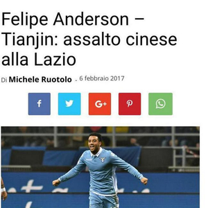 在相关报道中提到,中国的转会市场还没有关闭,将继续开放到2月28日。意大利俱乐部可能会继续(向中国俱乐部)出售球员。卡纳瓦罗执教的天津权健有意引进拉齐奥的攻击手费利佩-安德森。众所周知,天津权健正在寻找前锋,之前的人选包括卡利尼奇、卡瓦尼等。天津权健可能为费利佩-安德森提供一份巨额报价,拉齐奥主席洛蒂托为费利佩-安德森标价5000万欧元。