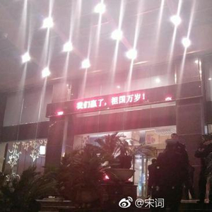 贺龙体育场外的一处电子显示屏上已经打出非常应景的八个字:我们赢了、祖国万岁。这样的情形,似乎只有在16年前的沈阳五里河出现过。长沙真的用事实证明了一件事情,这里确实是中国足球的福地,这一点连里皮都服气了。