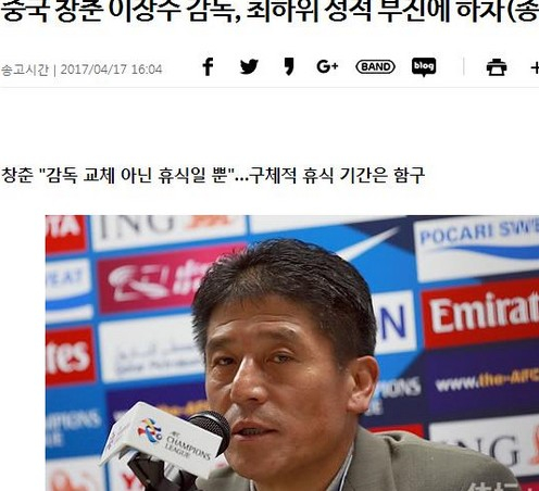 文章介绍道:“上赛季长春亚泰与李章洙签订了一份为期5年的长约,合同具体形式为3+2。不过在亚泰主场2比3不敌上海申花后,陈金刚成为球队代理主帅。”同时韩国媒体提到李章洙“下课”的理由,据长春亚泰官方消息,综合目前球队的成绩及表现,主教练承受了较大的压力,因此俱乐部方面希望李章洙能够“休息”调整一下,但俱乐部方面并未透露铁帅具体的休息时长。同时李章洙接受了俱乐部方面的提议。此外韩国媒体认为,目前张外龙率领的重庆力帆已经拿到8个积分,但朴泰夏的延边富德与崔龙洙的江苏苏宁目前联赛都仅积2分,稍有不慎就有下课风险。