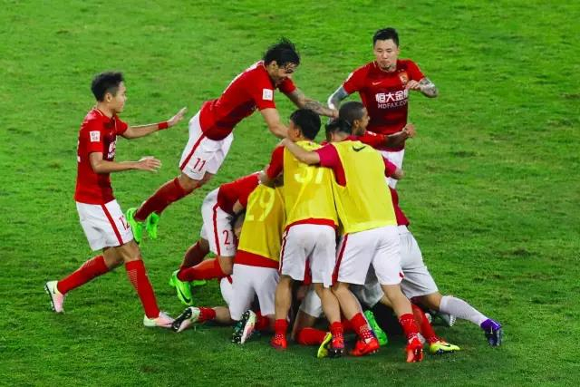 长春亚泰进球庆祝。