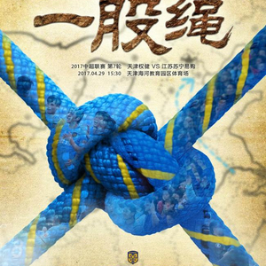 北京时间4月28日,江苏苏宁足球俱乐部发布了江苏苏宁易购队中超第七轮客场对阵天津权健队的官方海报——“拧成一股绳”!画面中,象征球队两个主色调的蓝黄两色的绳子牢牢相扣,寓意包括球员、球迷等各方力量团结在一起,携手并肩,希望球队和球迷为了最终的胜利“拧成一股绳,劲往一处使”。