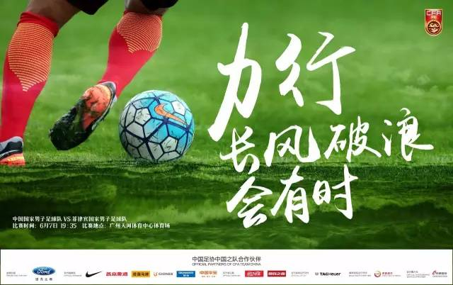 而今天,中国足协中国之队也推出新一期宣传海报——《力行 长风破浪会有时》