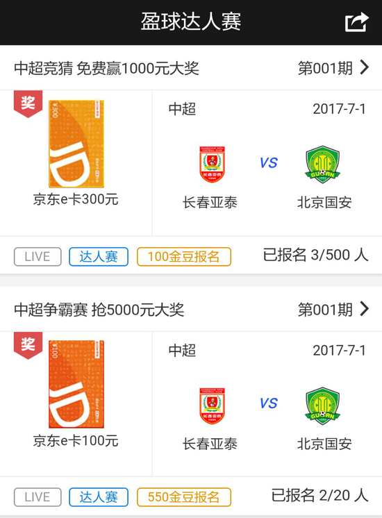 报名参与竞猜中超:长春亚泰VS北京国安