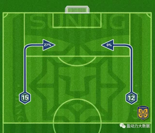 此战,江苏苏宁易购队共有27次活球传中,领先上港队多达19次,但传中成功率仅为15%。究其原因,一方面苏宁队的前锋特谢拉、高天意以及后续替换上场的高迪的技术特点并不擅长争抢高空球,面对上海上港队的后卫防线并没有明显的优势。另一方面,这种边中结合的打法需要边翼卫有较强的个人能力,右路球员陶源在几次失误后心态出现了变化。边翼卫发挥不佳导致江苏队的边路优势没有转化成进攻威胁。