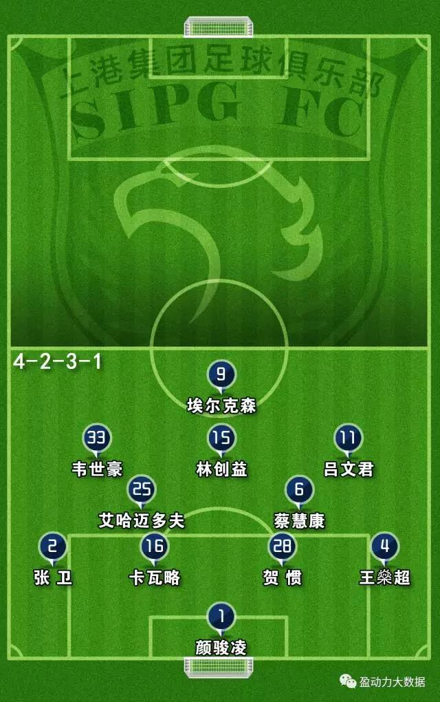 由于遭遇多名球员停赛,本场比赛上海上港队做出人员调整。埃尔克森领衔锋线,林创益担任前腰,韦世豪和吕文君分居两路。葡萄牙老将卡瓦略此役获得出场机会并且发挥非常出色。虽然上港右路少了威胁最大的胡尔克,10号位上也没有了奥斯卡覆盖全场的支援,但这也给了上海上港队前场做出更多变化的机会。
