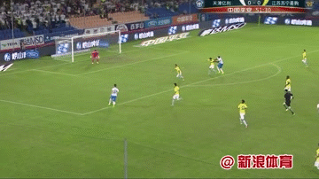 先是比赛第49分钟,古德利禁区外大力射门,顾超将球封出,迪亚涅拍马赶到,正当球迷准备欢庆之时,不可思议的一幕发生了!迪亚涅面对空门,却用左脚将皮球推向了天空!泰达错失了第一次好机会。