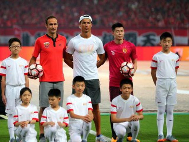 7月22日,在上海上港与广州恒大的天王山大战之前,世界著名球星C罗纳尔多来到球场与球迷互动,为本场比赛助阵。