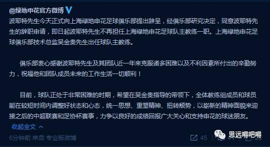 波耶特的强行“甩锅”,他认为自己的工作问心无愧,可是这一回,申花俱乐部已经不会再给他解释的机会了。曾率领申花队在03年夺得末代甲A冠军的吴金贵,将再次出山,带领申花队打完本赛季余下的比赛。